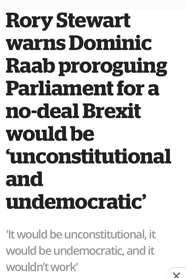 One of the few things I’m enjoying about Brexit is that we keep learning new words/phrases as they appear in everyday use on the news (as if we’ve all been bandying them about since we were small!). This week’s one is “prorogue” – “to discontinue a session of parliament without dissolving it”. Dominic Raab’s great plan is that if you “prorogue” parliament until 31st October, then parliament can’t block Brexit occurring on that date. Clever, huh? He’s not just a pretty face.